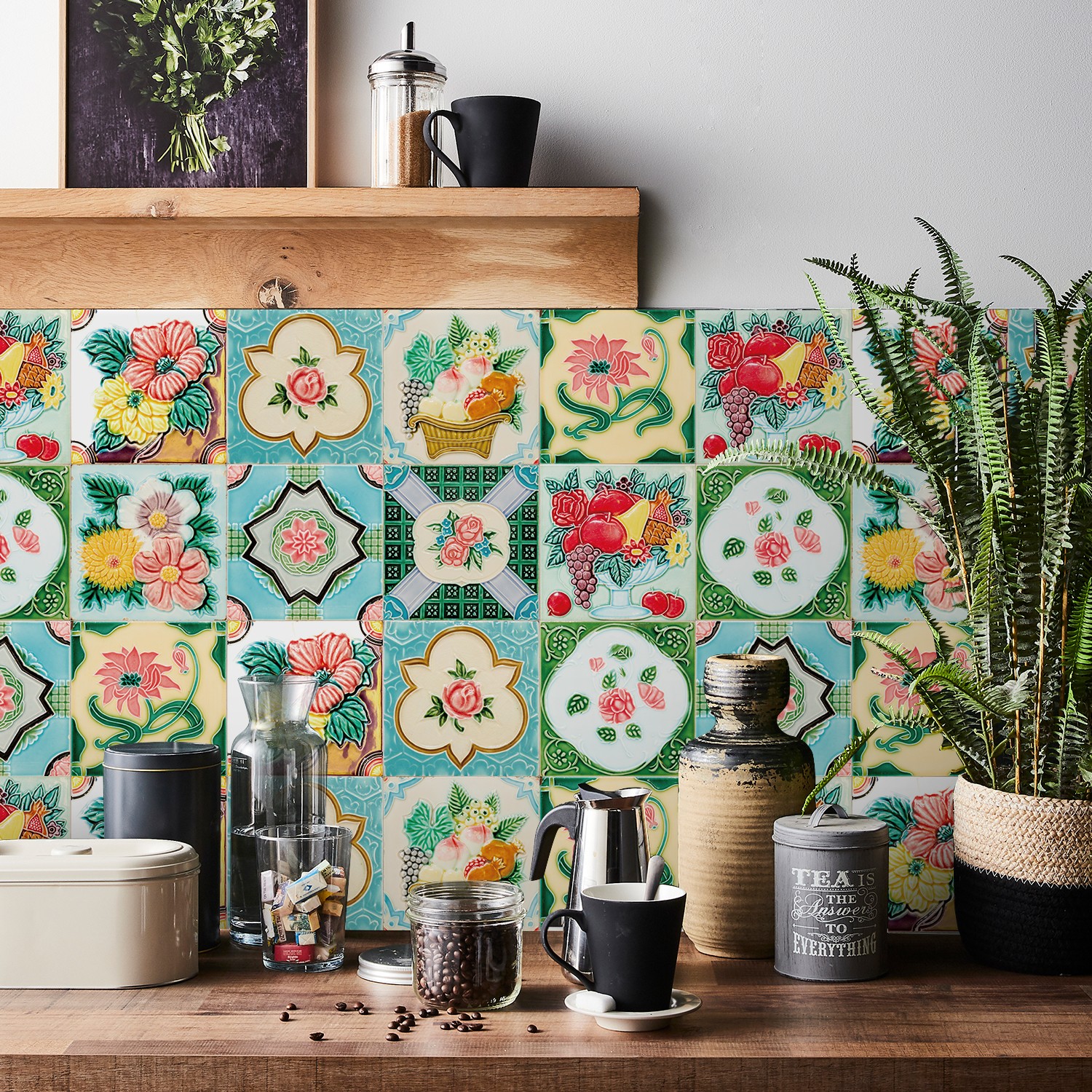 Ulticool Decoratie Sticker Tegels - Vintage Oma Spanje Portugal Mexico - Meubelfolie Keukenkast - 15x15 cm - 15 stuks Plakfolie Tegelstickers Meubel stickers - Plaktegels Zelfklevend - Keuken