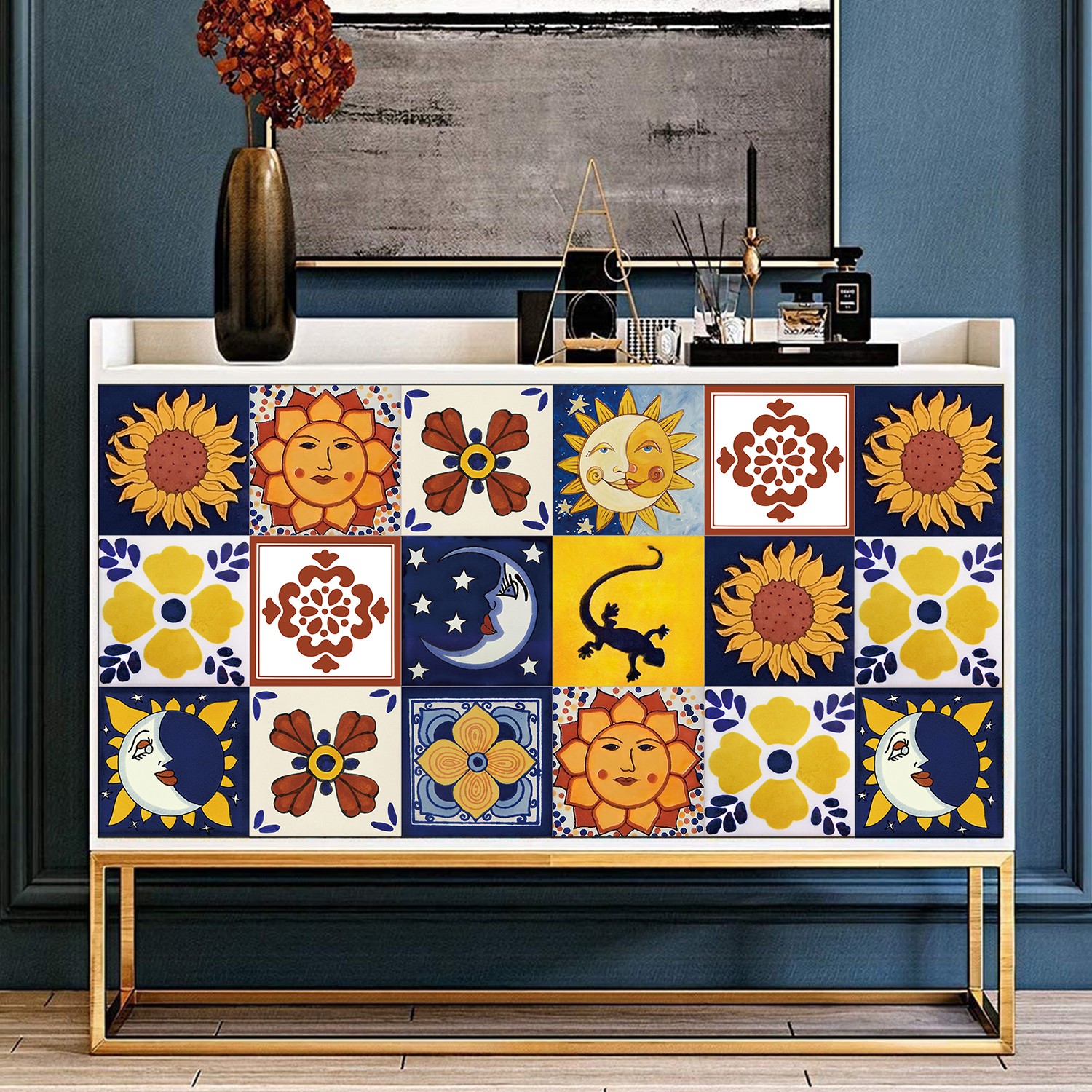Ulticool Decoratie Sticker Tegels - Zon Mexicaans Gekko Mexico - Meubelfolie Vierkant Folie Keukenkast  - 15x15 cm - 15 stuks Plakfolie Tegelstickers - Plaktegels Zelfklevend - Badkamer - Keuken